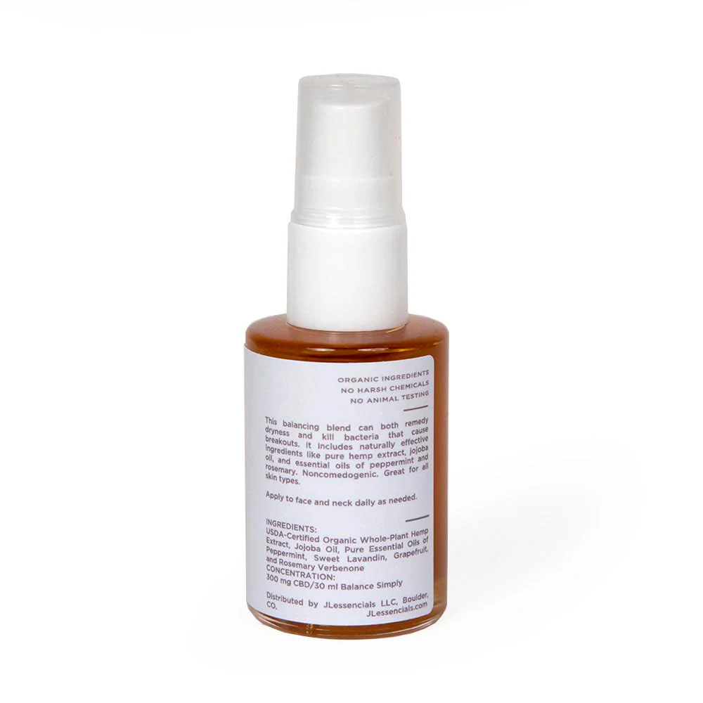 We’ve combined our Balance Simply Facial Oil with full-spectrum hemp extract for the ultimate benefits. This amazing blend can both remedy dryness and kill bacteria that cause breakouts. It’s noncomedogenic, and you won’t find any harsh synthetic chemicals among its ingredients. Instead, you’ll find nourishing and naturally effective ingredients like jojoba oil and essential oils of peppermint and rosemary. Great for all skin types, including combination skin. Use daily.